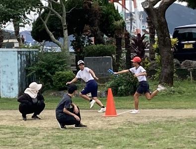リレーでは,バトンパスの技能を高めさせてもらいました。なっとく!