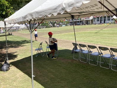 昨日は,全員でテント立てや万国旗張りなど,準備に勤しみました。