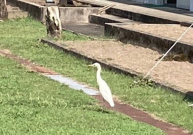 先週は,ずっと,校庭で捕食活動をしていた小さめのサギ。