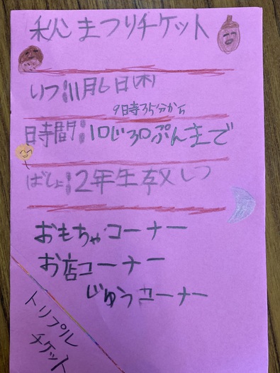 学校自由参観に乗っかり,小2の2人が中心になり,秋祭りを開催!集客力抜群!!!